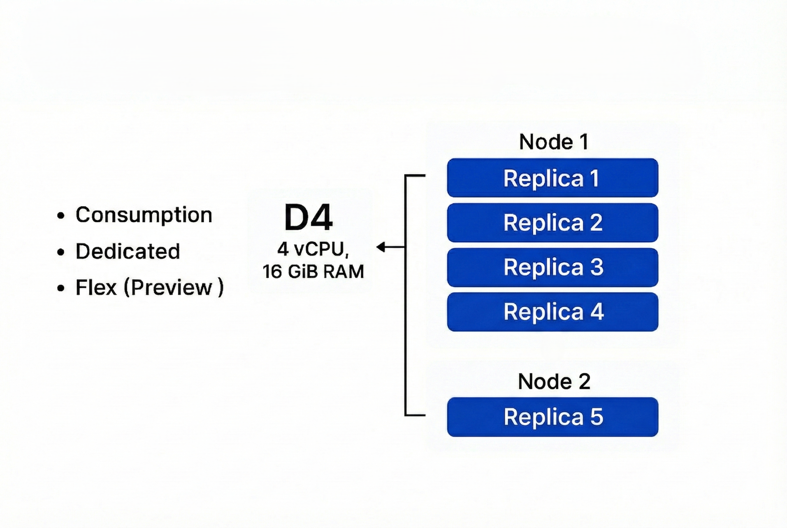 - Replicas share node resources; ACA packs replicas until node capacity is full.